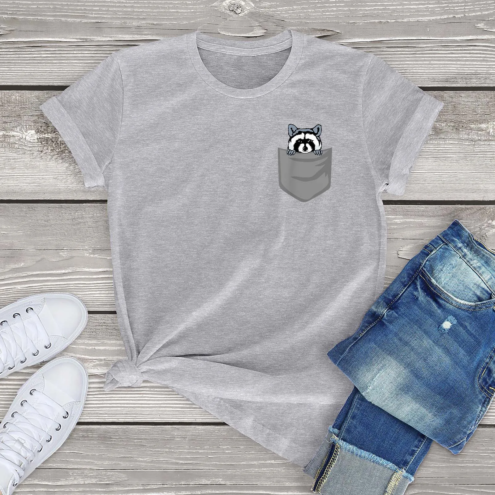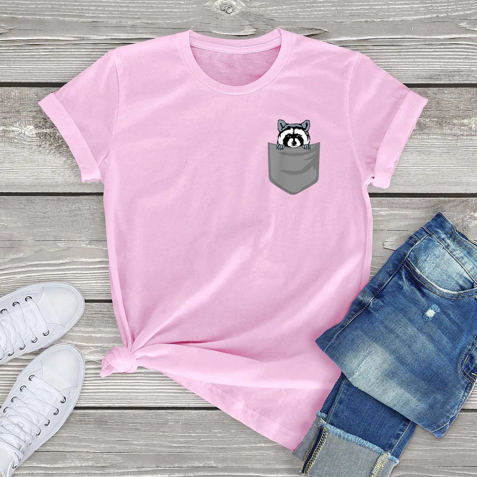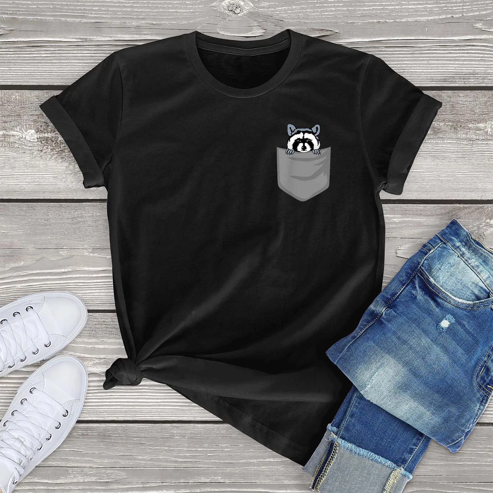 Забавный подарок на день рождения Енот с карманами для женщин 100% хлопок модная мужская и женская футболка