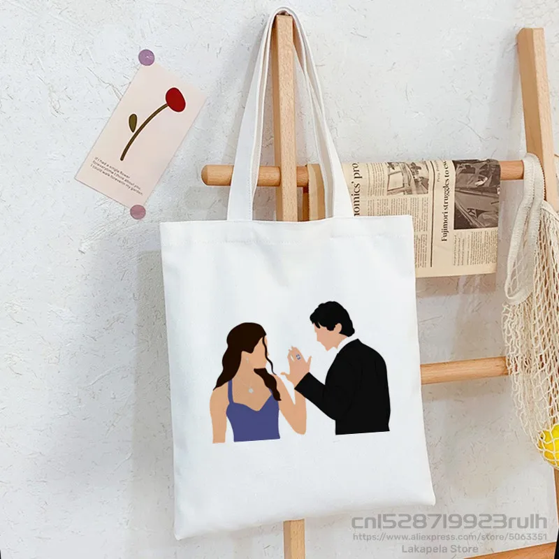 The Vampire Diaries Funny Shopping Bag Graphic Tote Harajuku Women Canvas Shoulder Bag Female Ulzzang Eco Large-Capacity