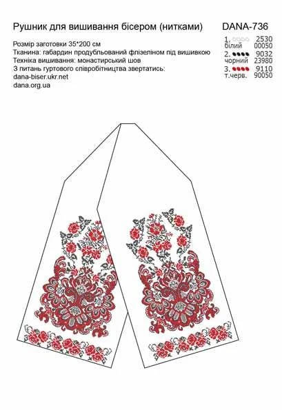 Кількість бісеру зазначена загальна (на обидві сторони рушника)