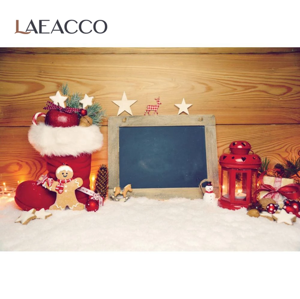 Laeacco Christmas Party Decro Photography Backdrops Wooden Board Raindeer Snowman Lantern Socks Photo Background Photo Studio