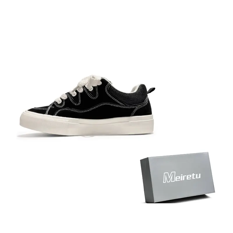 Meiretu Скользоустойчивые износостойкие дышащие мужские скейтерские кеды лоу-топ черные, цвет Black