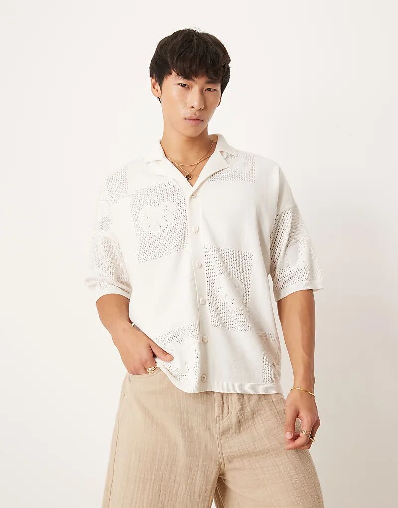 Свободная трикотажная фактурная рубашка-поло с цветочным принтом ASOS DESIGN на пуговицах кремового цвета