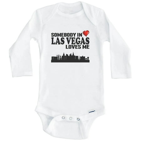 Somebody In Las Vegas Loves Me One Piece Baby Bodysuit (Long Sleeve) 3-6 Months White