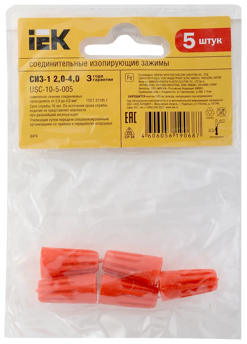 Зажим винтовой IEK СИЗ-1 2,0-4,0, 2,0...4,0 мм²,5шт., красный (USC-10-5-005), СИЗ-1 2,0-4,0