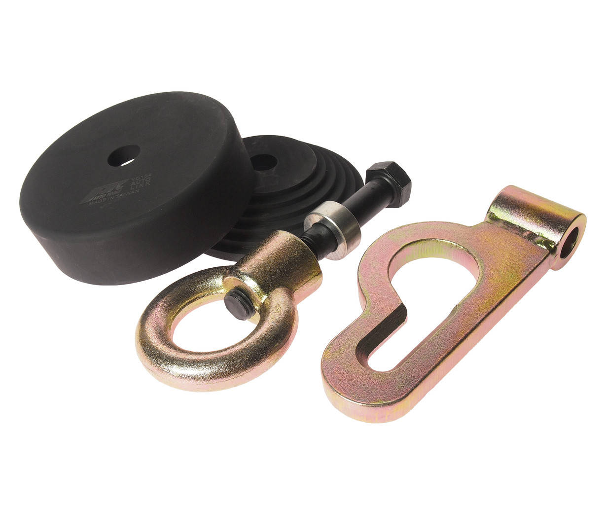 · Предназначен для вытягивания передних стоек без болтов, а также для выравнивания шасси до заводских параметров. При необходимости, чашка передней стойки снимается.