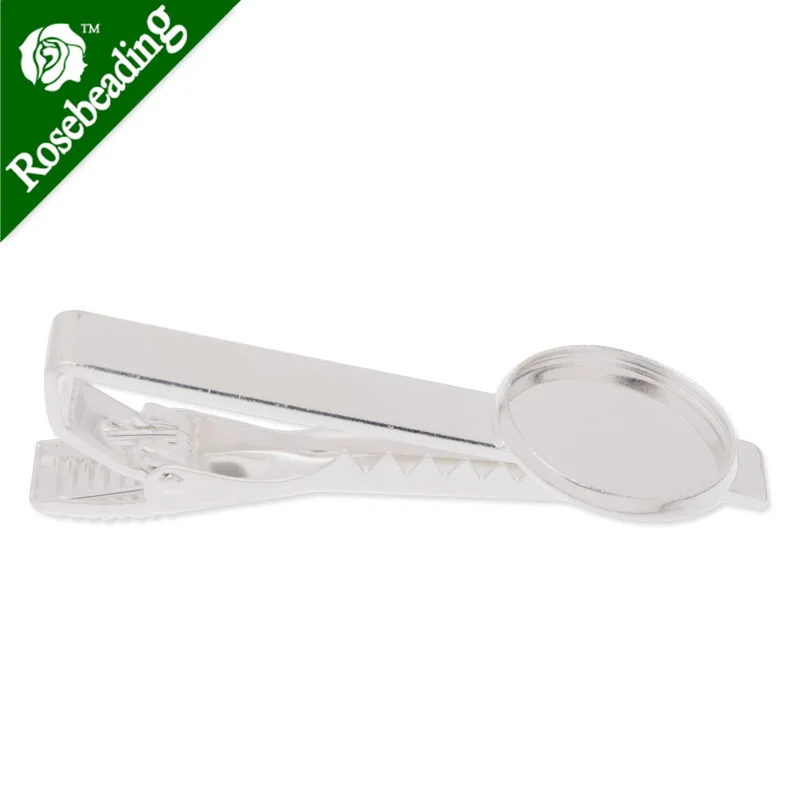 Зажим для галстука с круглой рамкой 16 мм, латунное покрытие, посеребренное покрытие, длина 51 мм, продается 10 шт./лот-C3582