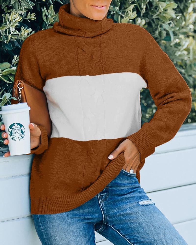 Жен. Полоски Длинный рукав Пуловер, Хомут Черный / Красный / Коричневый Один размер