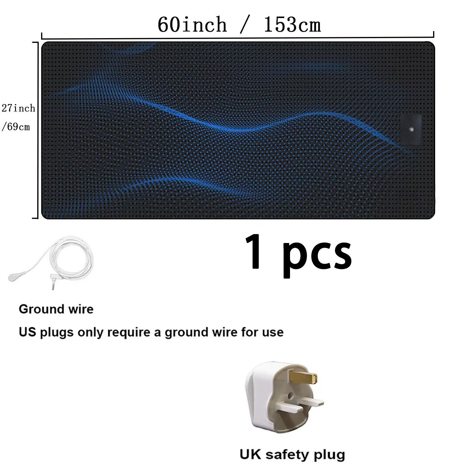 Заземляющий коврик для кровати Противоскользящая накладка из ПУ кожи с заземляющим шнуром Улучшает сон Снимает стресс и боль 1pcs UK Plug чёрный