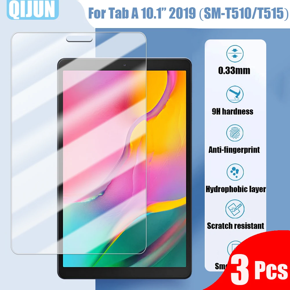 Закаленное стекло для планшета Samsung Galaxy Tab A 10,1 дюйма, 2019 дюйма, с защитой от взрывов и царапин, с защитой от отпечатков пальцев, 3 предмета, T515