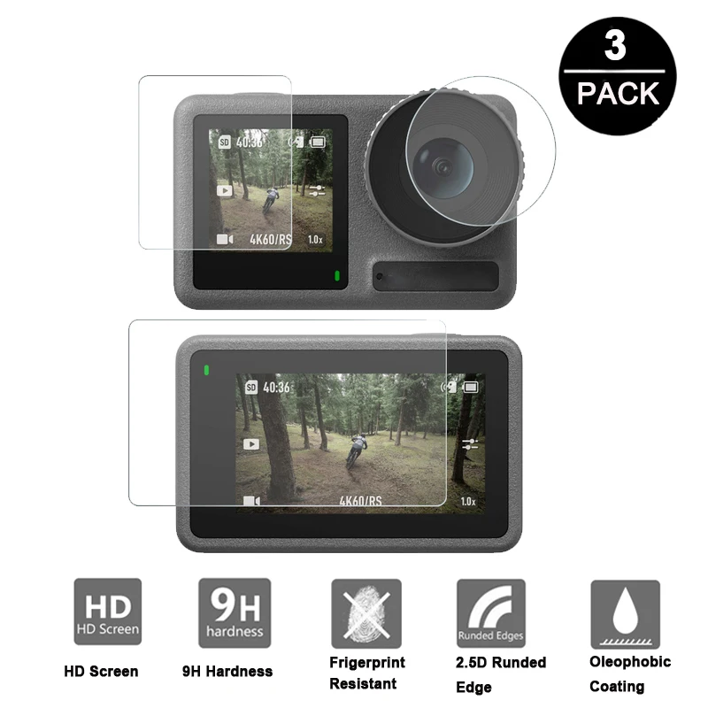 Закаленное стекло для DJI Action3 Action 3, защитная пленка для экрана, закаленная пленка для объектива, прозрачная крышка для экрана HD камеры, 3 шт.