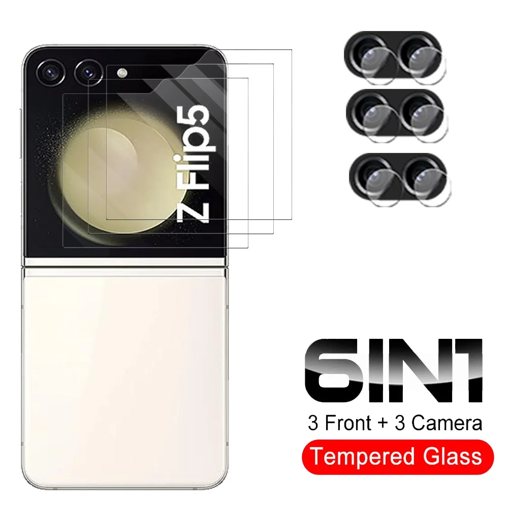 Закаленное стекло 6 в 1 для камеры Samsung Galaxy Z Flip5, Защитное стекло для задней панели экрана Samsung Z Flip ZFlip 5 ZFlip5