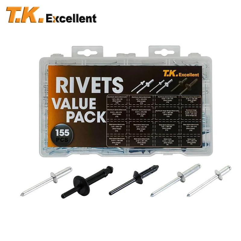 Заклепки-шторы разных размеров, заклепки из алюминиевой стали и нейлона, набор в ассортименте, 155 шт., заклепки-шторы 3,2 мм, 4,0 мм, 4,8 мм