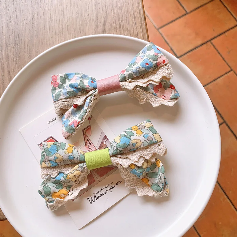 Заколка для волос в Корейском стиле с цветочным кружевом для девочек с бантом и боковым зажимом детский тканевый головной убор заколка для ...