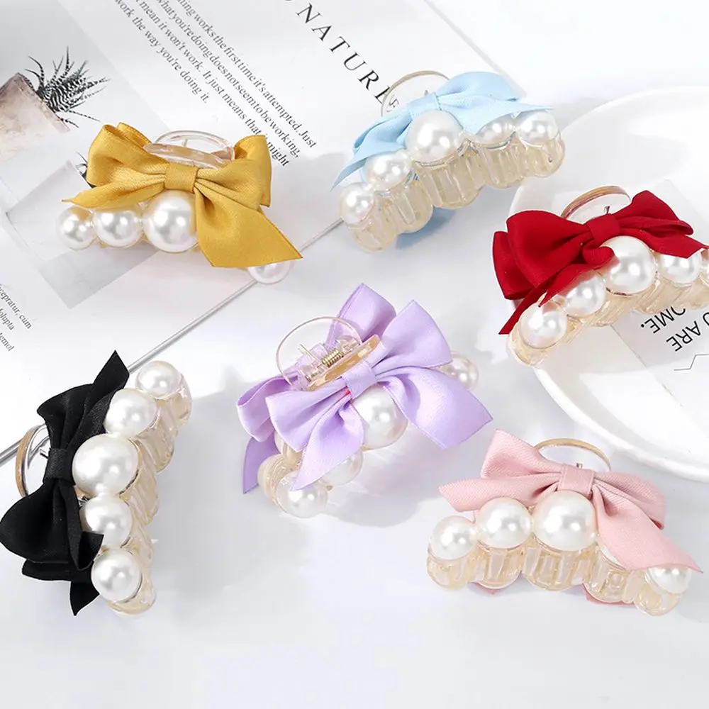 Заколка для волос с жемчужинами и бантом женская, элегантный темпераментный зажим для хвоста с акулой, аксессуар на голову