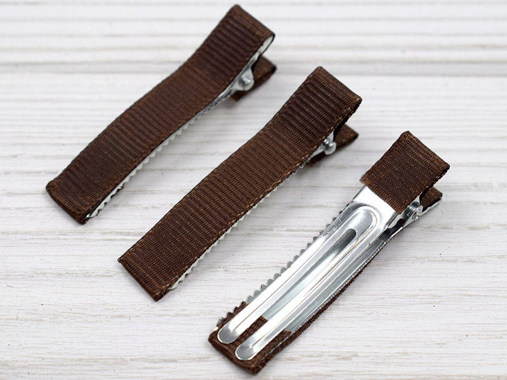 Заколка крокодильчик с репсом - №10 коричневая, Разные цвета