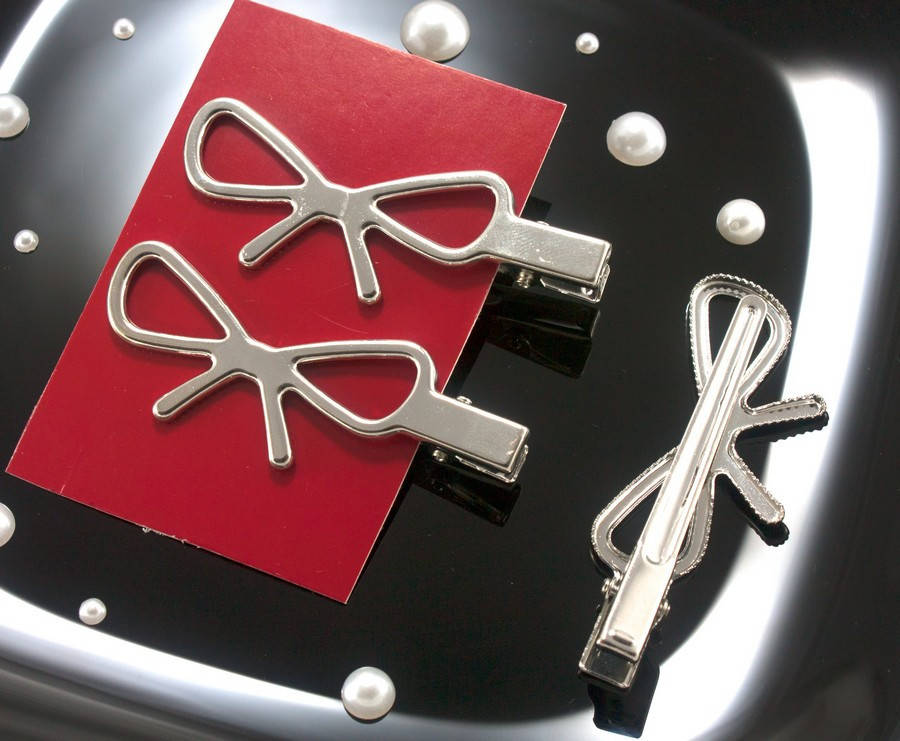 Заколка уточка 70мм Бантик, серебро (сп5нг-1605), Серый