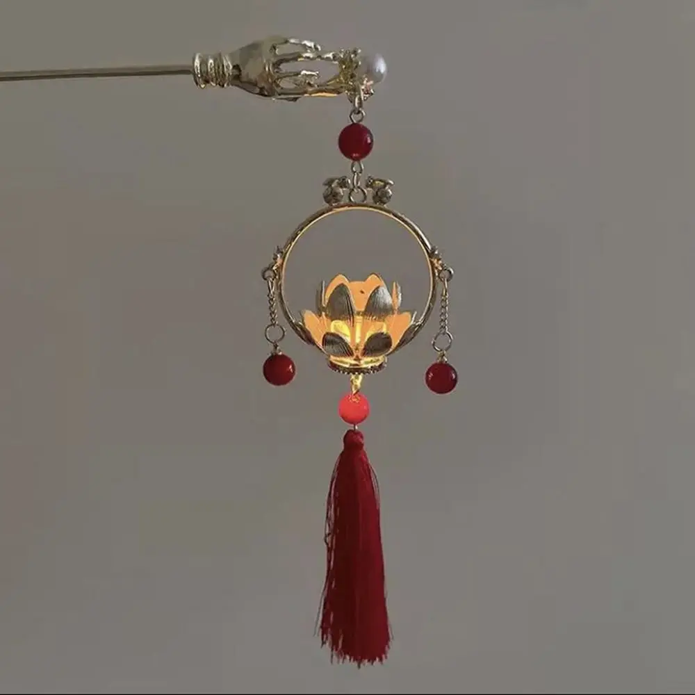 Заколки для волос в китайском стиле для девочек, шпильки с кисточками, цветами лотоса, заколки-фонарики в Корейском стиле с акулой, женские шпильки для волос