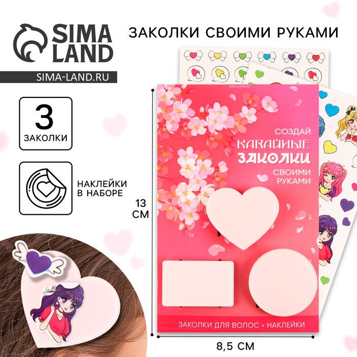 Заколки для волос , своими руками «Кавайные заколки», 8.5 х 13 см
