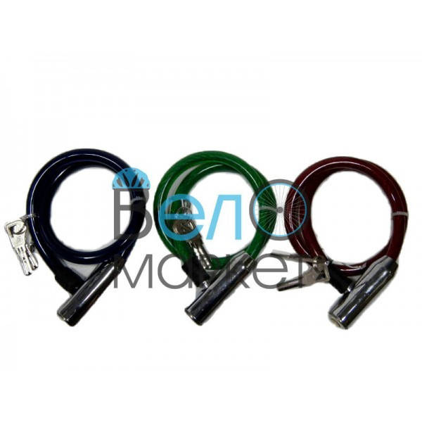 Диаметр троса 12 мм Длина замка -650 мм 2 ключа в комплекте Цвета: красный,зеленый,синий