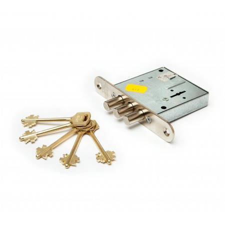 Тип ригелей -Цилиндрические Количество ригелей -3 Диаметр ригеля -12 мм Тип механизма секретности - Сувальдный Количество ключей -5 шт Удаление ключевого отверстия (Backset) -53.5 мм Вылет ригелей -21.5 мм Количество точек запирания -1 Защелка -Отсутствует Дополнительное запирание изнутри -Нет Назначение -Общее Рекомендован для установки в межкомнатные двери -Да Рекомендован для установки в входные двери -Да Автоматическое запирание -Не автоматическое Тип крепления врезн. замка -Лицевая планка Цвет лицевой планки -Хром Покрытие лицевой планки -Гальваника Дополнительный механизм секретности -Нет