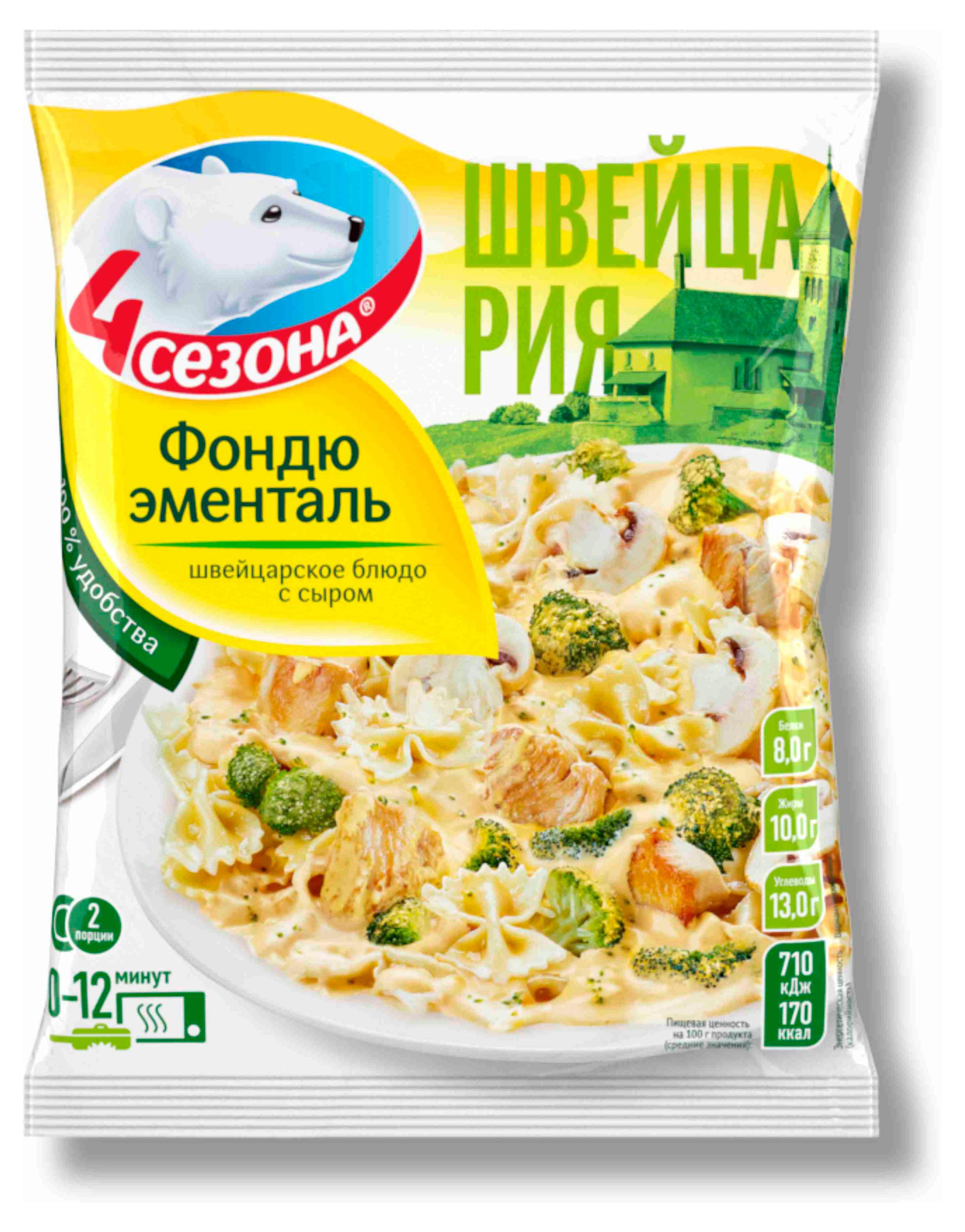 Замороженная смесь Швейцария 4 Сезона Фондю Эменталь швейцарское блюдо с сыром 2 порции, 600 г