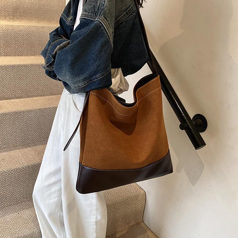 Замшевая сумка в стиле ретро, модная сумка-ведро для поездок на работу, высококачественная фактура, сумка-тоут через плечо коричневый