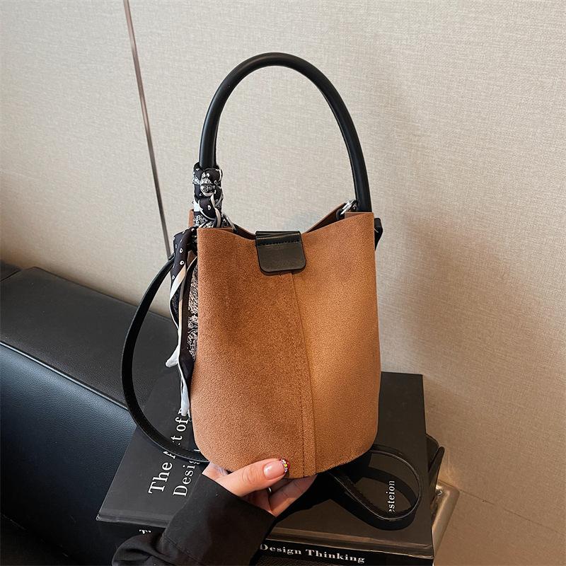 Замшевая сумка женская осень и зима 2025 новая матовая ретро нишевая сумка-мессенджер сумка для ребенка и мамы на плечо портативная сумка-ведро коричневый