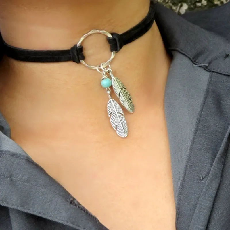 Замшевое ожерелье-чокер с искусственными перьями, ювелирные изделия, кольцо-чокер, ювелирные изделия в стиле бохо