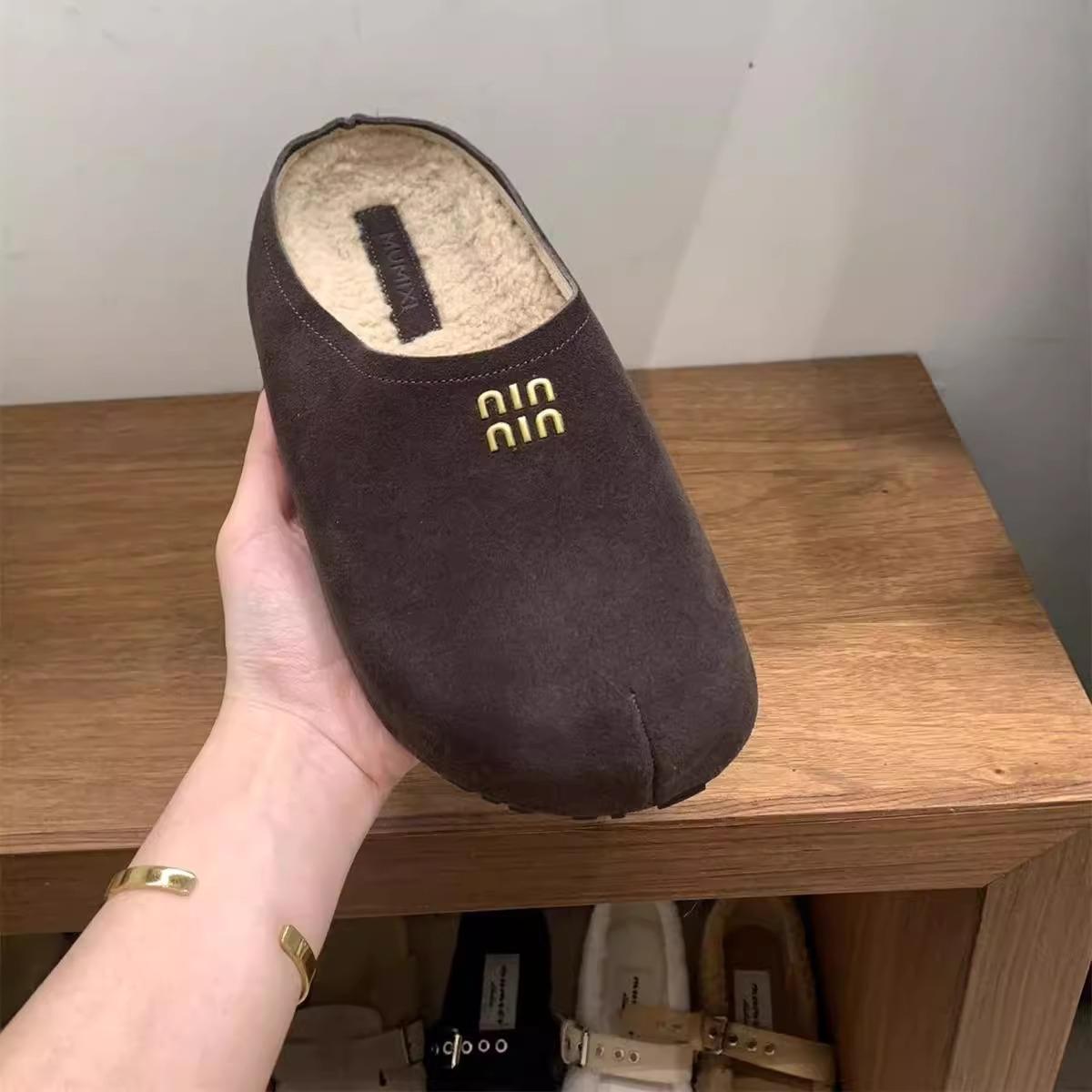 Замшевые балетки Мюли Женские тапочки Модные домашние плюшевые хлопковые туфли Зимние шлепанцы с открытой пяткой Трендовые теплые удобные туфли-лодочки 40