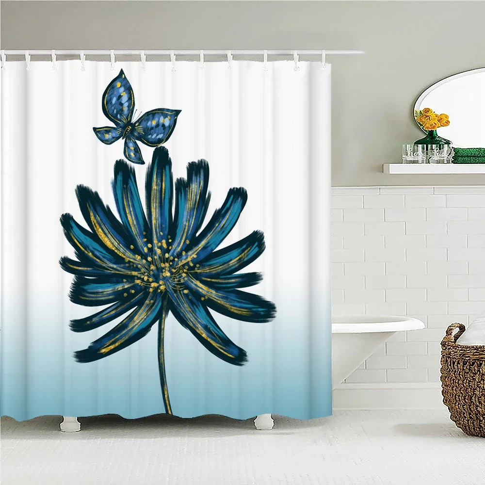 Занавеска для душа, водонепроницаемая тканевая шторка для ванной с красивыми цветами и принтом бабочки, 12 крючков