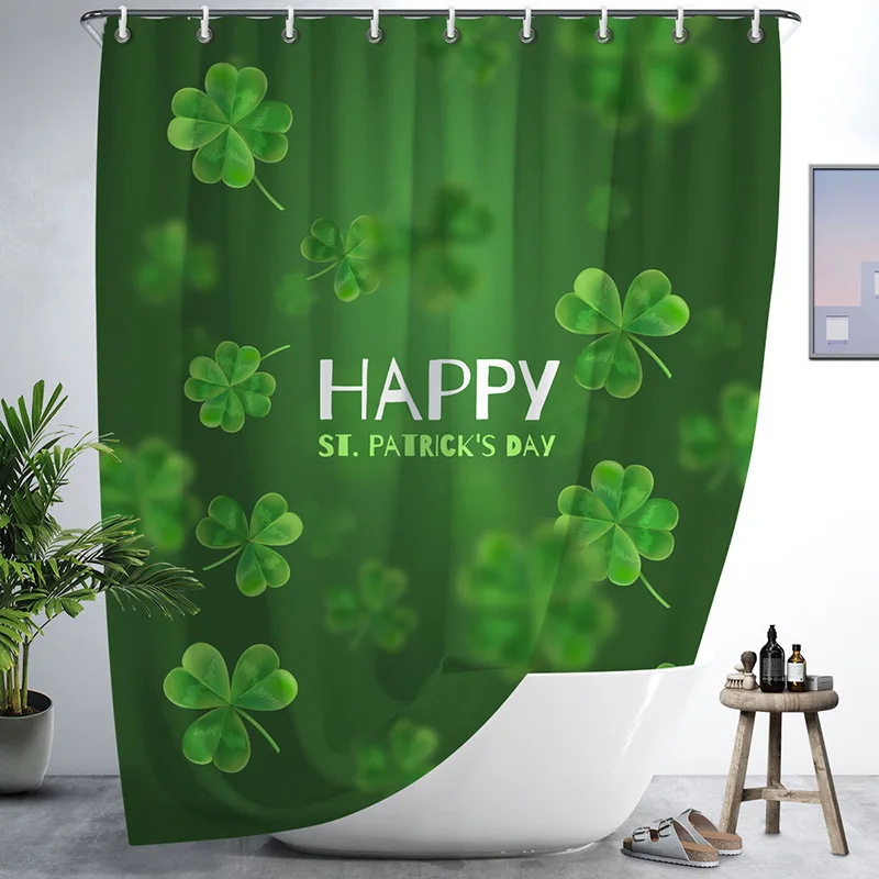 Занавеска для душа в виде клевера, декоративная занавеска для ванной комнаты, с крючками, Забавный принт, День Св. Патрика