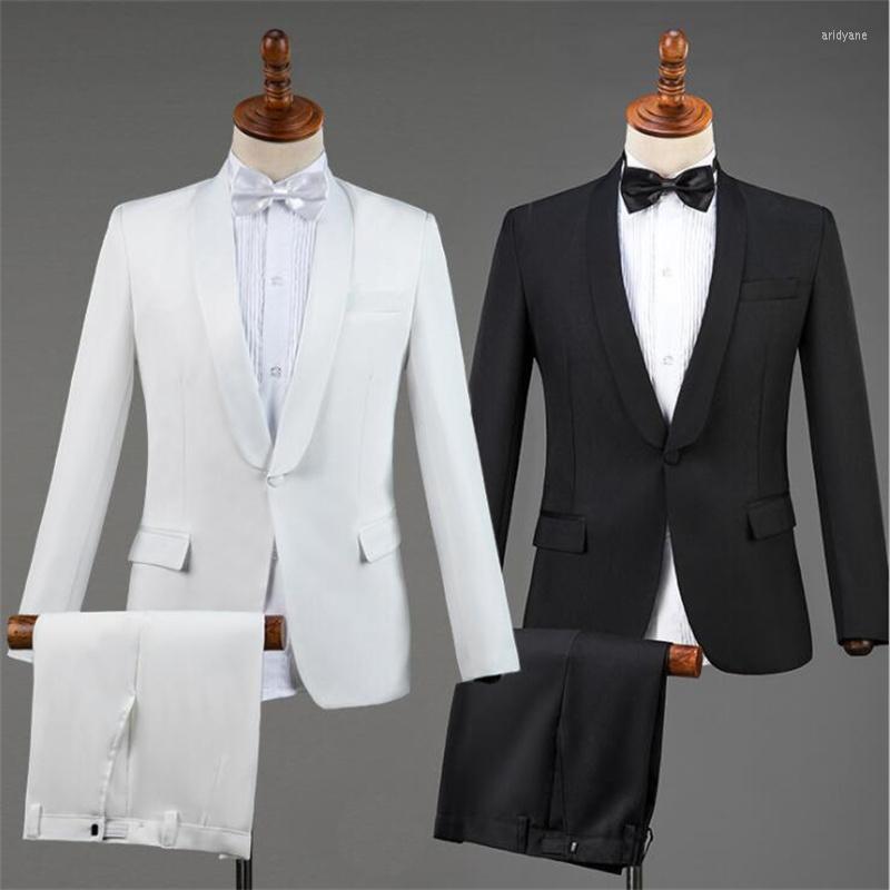 Men's Suits Wedding For Men Blazer White Black Singer Fashion Slim Masculino Latest Coat Pant Designs Chorus Groom Clothes S-2XL