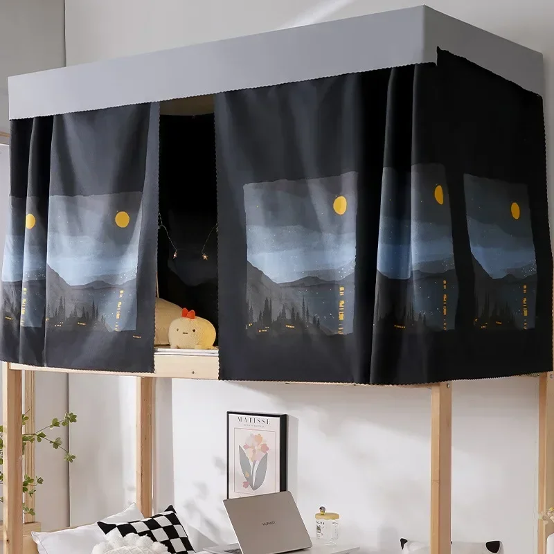 Занавеска для кровати, черная, полиэстер/хлопок, для нижней койки