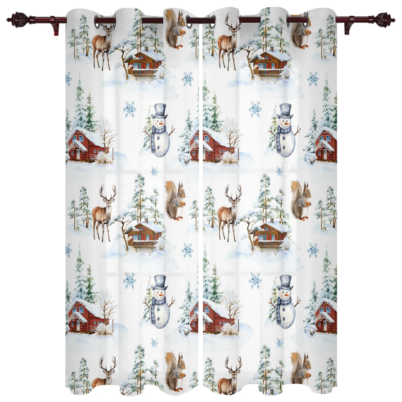Занавески на окна для гостиной и спальни, украшение для дома на зиму, Рождество, белка, снеговик, лось, занавески