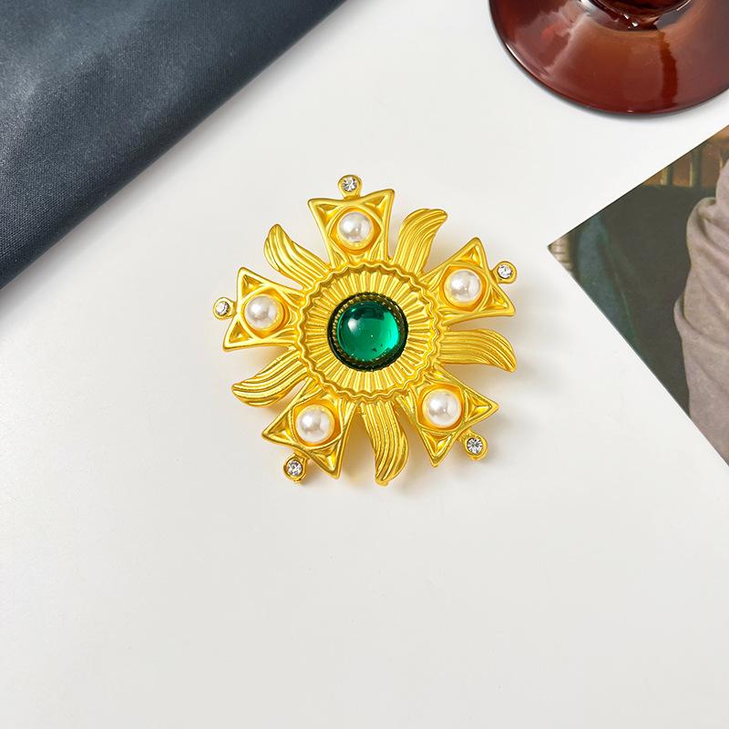 Западная антикварная реплика жемчужная глазурованная рельефная брошь средневековые аксессуары хрустальная булавка зелёный