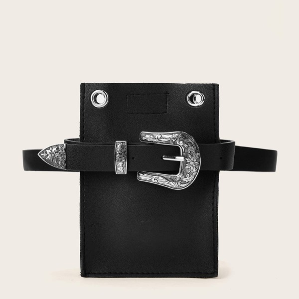 Западный Пряжка Ремень Декор Фанни Пак, Чёрный