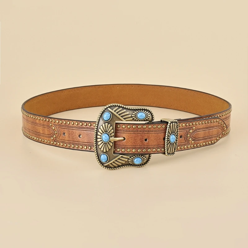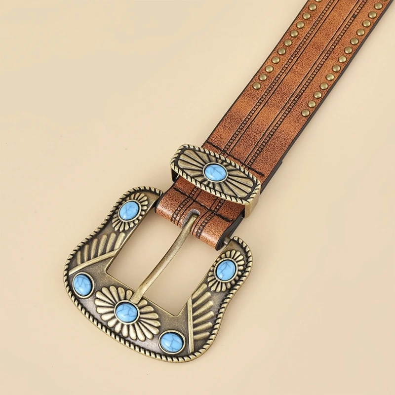 Западный бирюзовый ремень с пряжкой, ковбойские ремни для мужчин, винтажный ремень в стиле вестерн