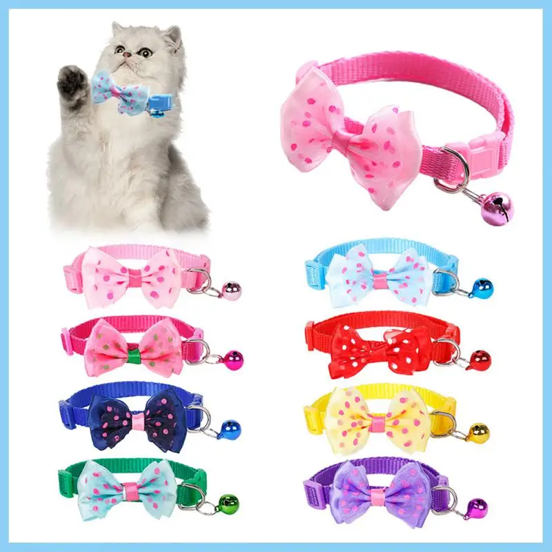 1PCS Adjustable Cat Dog Collars Cute Bow Tie With Bell Pendant Necklace Fashion Necktie Safety Buckle Pet Clothing Accessoreis