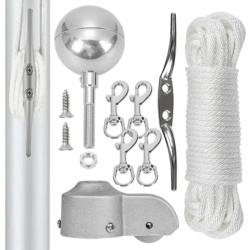 Запасные части для флагштока, запчасти для флагштока, фурнитура, Топпер 3 дюйма, золотой шар 50 дюймов, халиардовый шнур, 4 крючка, 6 дюймов, шипы и флагштоки