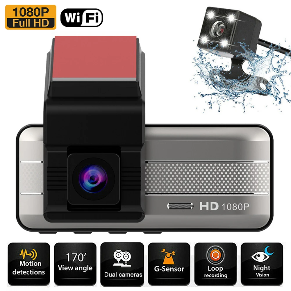 Автомобильный видеорегистратор, видеорегистратор заднего вида, 3,16 дюйма, 1080P HD, WDR, циклическая запись, G-датчик, ночное видение, 170 широкий уг...