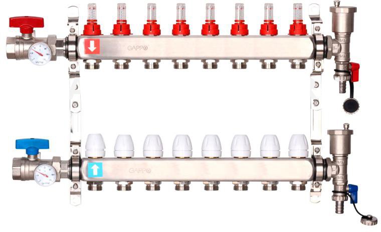 Запорная арматура Gappo Коллектор регулируемый с расходомерами G422.8 8-вых. x1"x3/4"