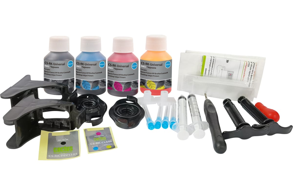 Заправочный набор струйный Cactus CS-RK-Universal, 4x40 мл, голубой/ пурпурный/ желтый/ черный совместимый, CS-RK-Universal