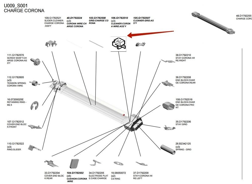 МФУ Ricoh G1782510 CLEANER:CORONA WIRE:ASS'Y, G1782510