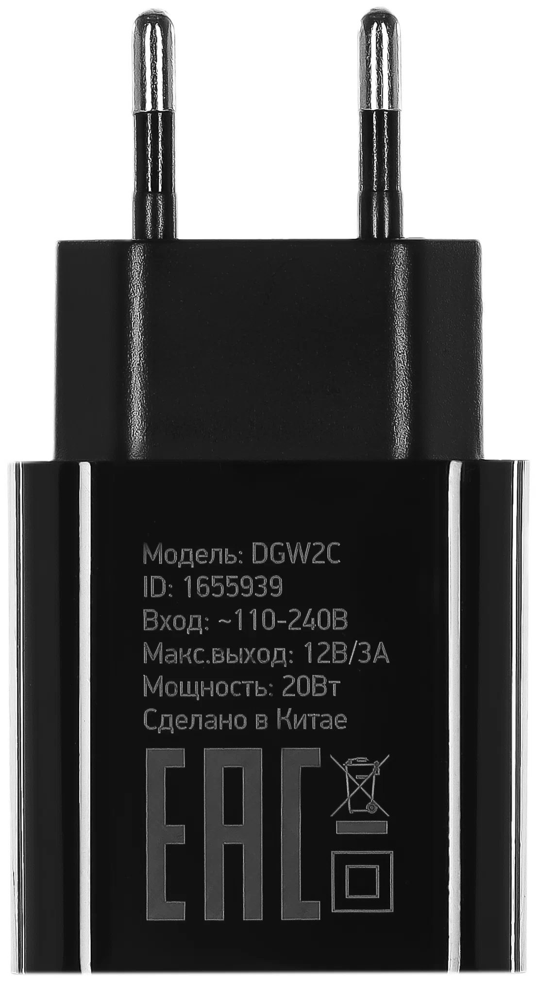 Зарядное устройство сетевое Digma DGW2C0F010BK DGW2C, 3A PD, черное, DGW2C0F010BK