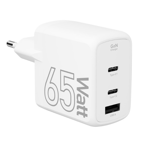 Зарядное устройство сетевое Lyambda LJC-65-2C1A GaN, 65 Вт, 2xUSB-C, 1xUSB-A, белый, LJC-65-2C1A
