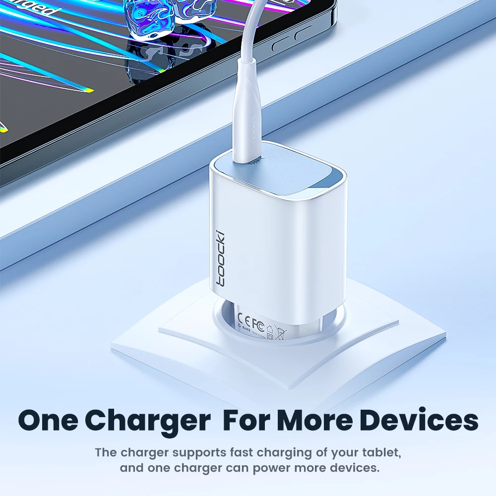 Зарядное устройство Toocki сетевое с USB-портом и поддержкой быстрой зарядки, 20 Вт