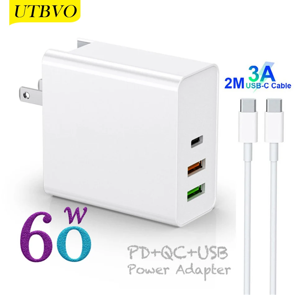 Зарядное устройство UTBVO с 3 портами и мощностью 30 Вт, 60 Вт, 3,0 PD, Складной настенный адаптер для iPhone 12 Pro Max, iPad Pro, AirPods Pro