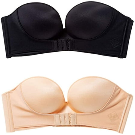 2 Pack Women Hand Shape Front/Back Buckle Custom Lift Invisible Wirefree Anti-Slip Strapless Push Up Bra