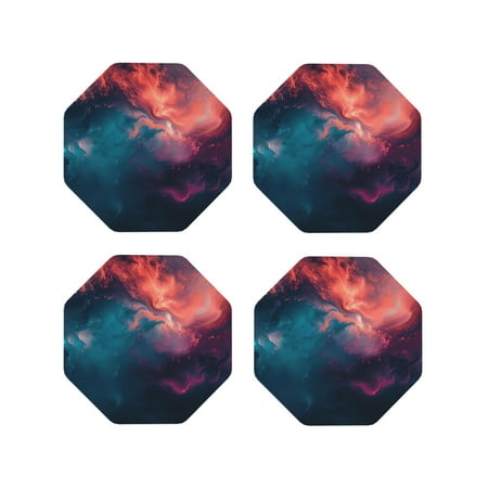 Leather Coasters Set of 4 - Cosmic Paint Swirl Lightweight Non-Slip Drink Coasters for Desk Anti-Scalding Desk Cup Coasters for Office Table Decor Octagon