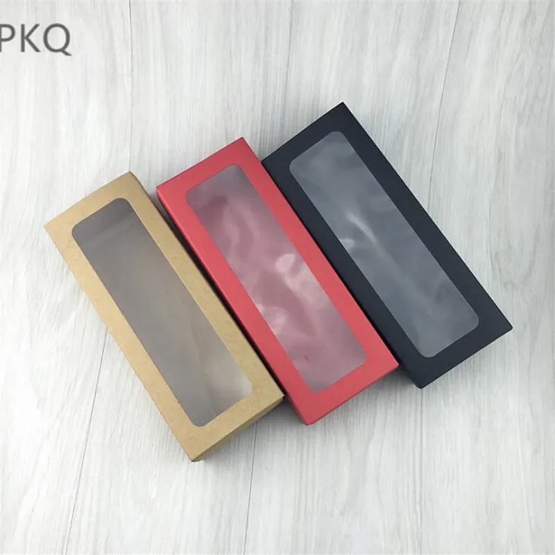10pcs pvc window kraft paper Macarons gift box black baking candy cake box red flower tea boxes brown soap packaging drawer box